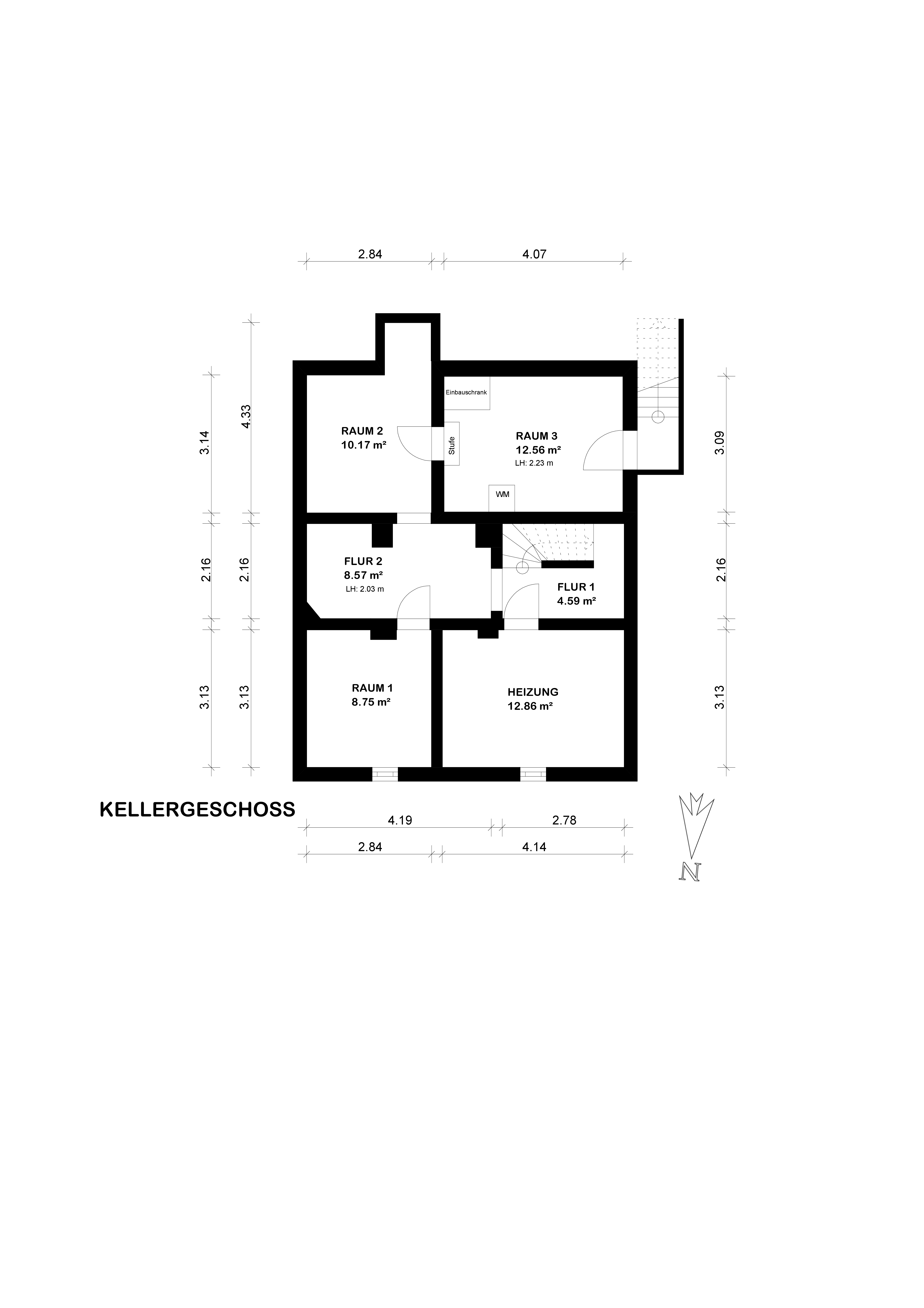 Der vollunterkellerte Bereich mit rund 57 m² bietet reichlich Abstellfläche, einen Heizungsraum sowie zusätzliche Nutzungsmöglichkeiten für Hobby und Lager. Der Spitzboden (ca. 19 m²) erweitert das Platzangebot nochmals. Abgerundet wird das Haus durch eine Garage mit direktem Zugang zum Gebäude.